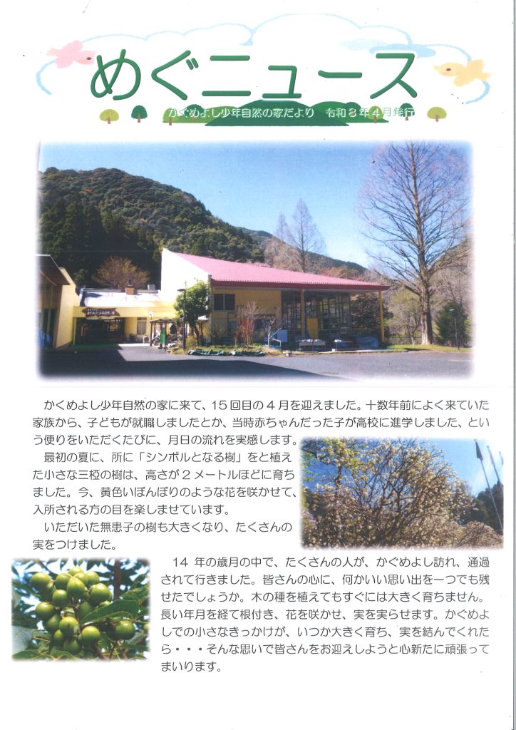 平素よりかぐめよし少年自然の家の事業運営につきまして格別の御理解と御協力を賜り、厚く御礼申し上げます。
